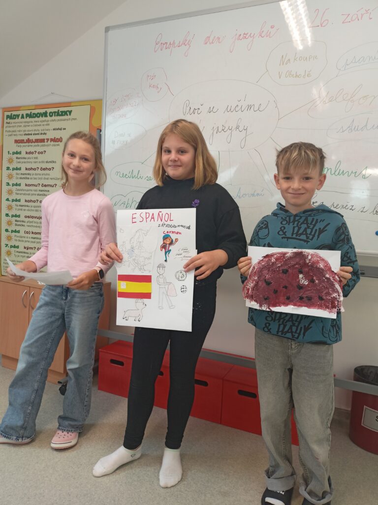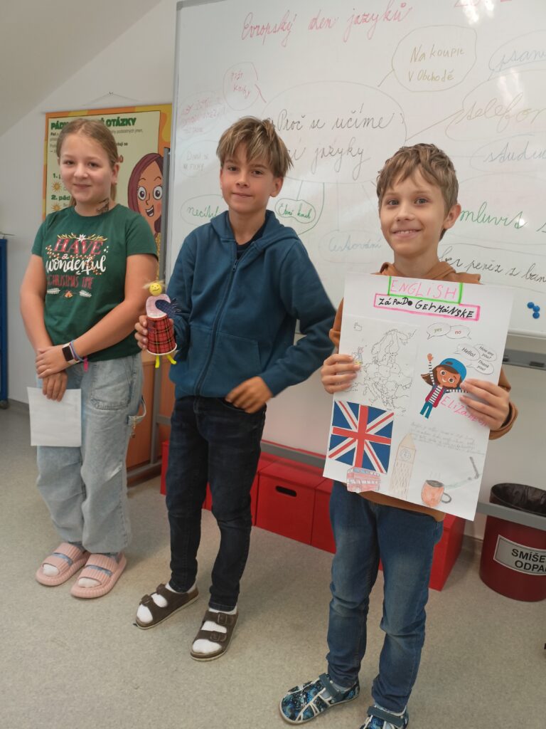 V rámci oslav Evropského dne jazyků letos páťáci prožili dvoudenní projektové vyučování plné objevování, tvoření a spolupráce. Děti na základě rozlosovaných indicií vytvořily malé trojčlenné skupinky, ve kterých se věnovaly jednomu z evropských jazyků.