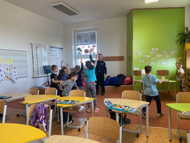 Dne 5. listopadu nás ve škole navštívili příslušníci Policie České republiky. Pro děti si připravili zajímavý a poučný program zaměřený na dopravní výchovu. Společně jsme si připomněli základní pravidla silničního provozu, význam dopravních značek a také správný způsob, jak bezpečně přecházet vozovku.