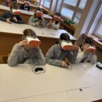 Během návštěvy jsme si prohlédly celou školu – třídy, odborné učebny, jídelnu i tělocvičnu. Největší nadšení vzbudil připravený program v učebnách fyziky a chemie. Ve fyzice si děti vyzkoušely brýle pro virtuální realitu i zajímavé pokusy, v chemii jich bylo snad ještě víc. Každý žák si odnesl domů „zlaťák“ vyrobený z dvacetikoruny, nasmáli jsme se při pokusech s heliem a ti nejstatečnější dokonce hořeli.