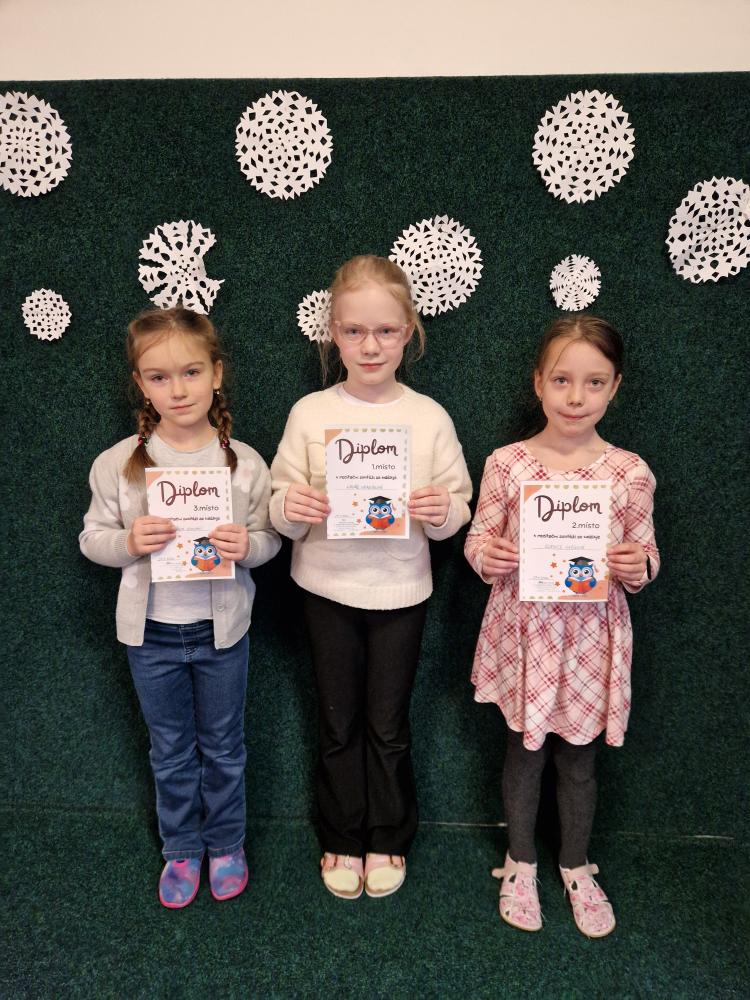 Recitační soutěž byla zároveň milou tečkou za prvním pololetím školního roku. Zítra čekají žáky pololetní prázdniny – přejeme všem dětem, aby si je pořádně užily, odpočinuly si a načerpaly nové síly do další práce.