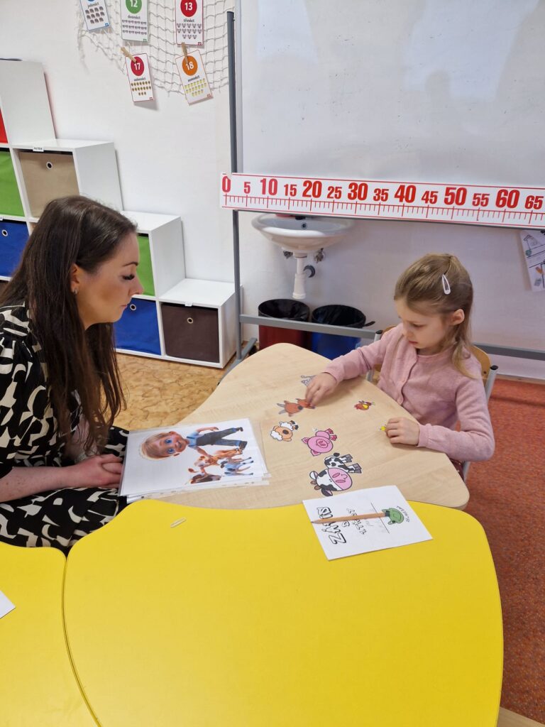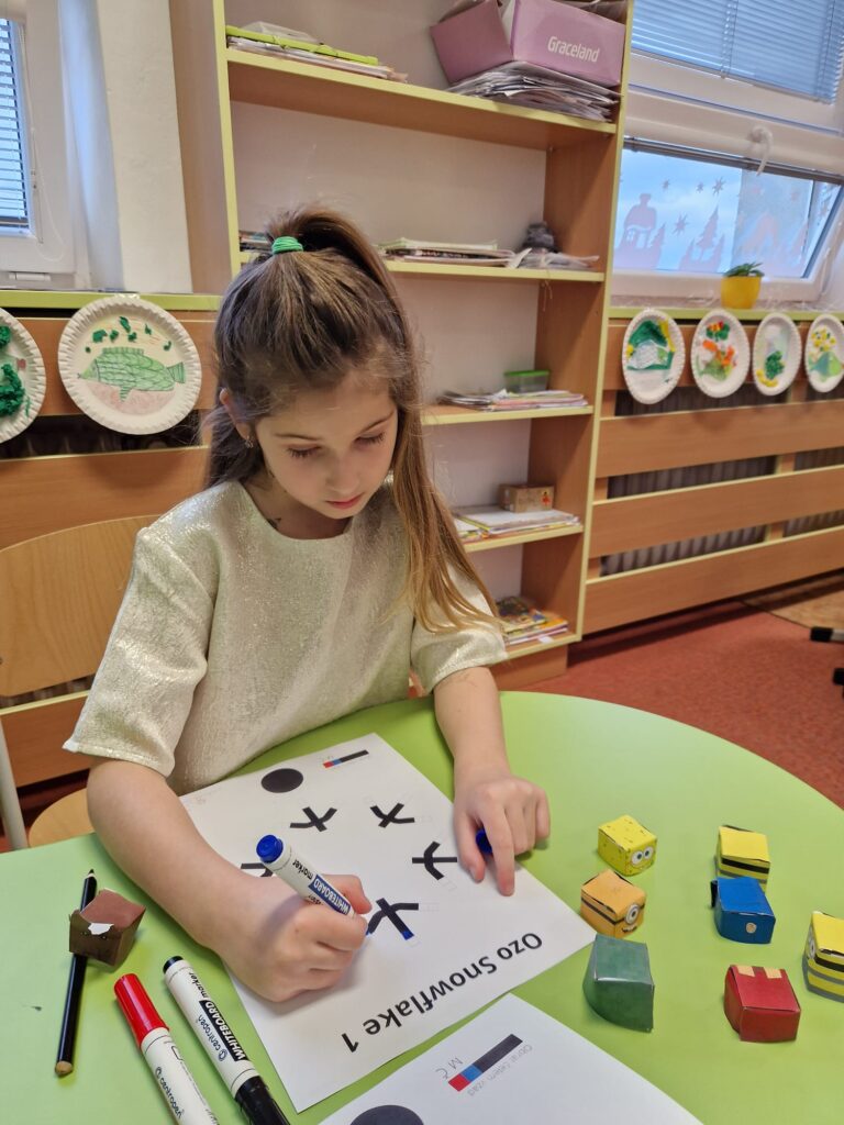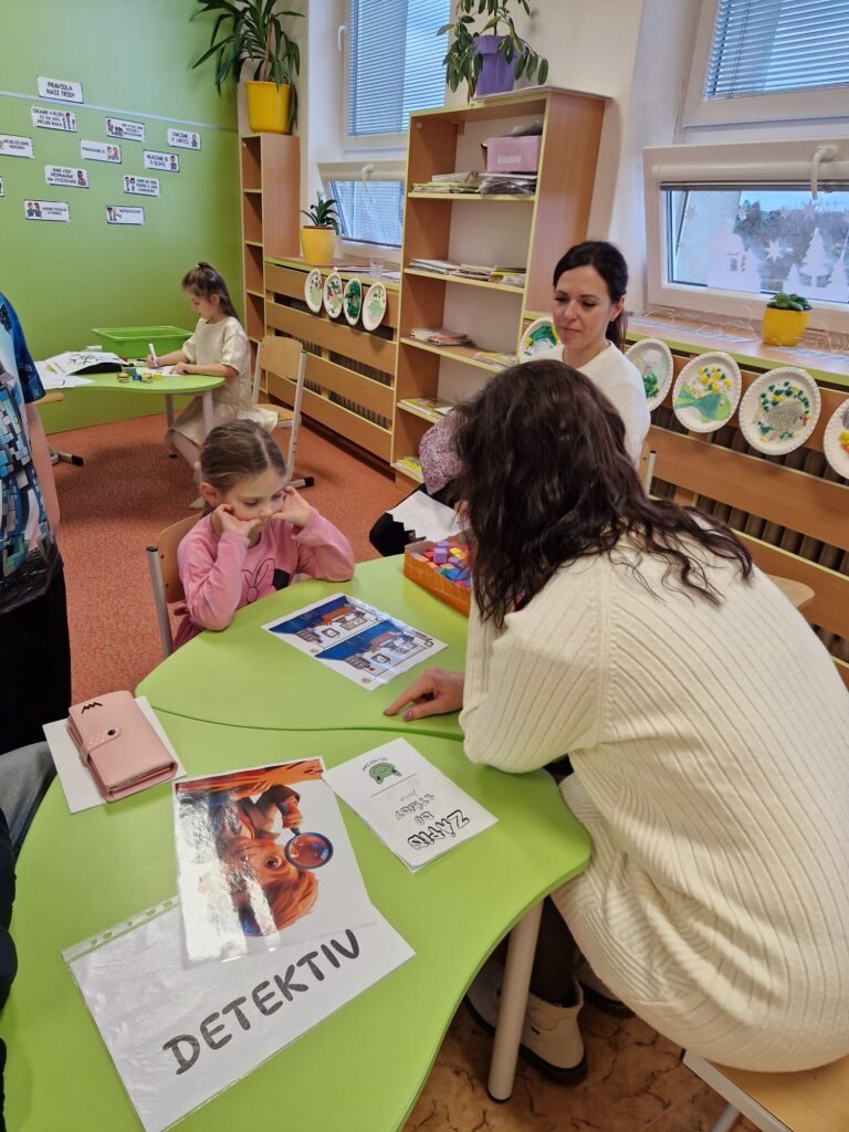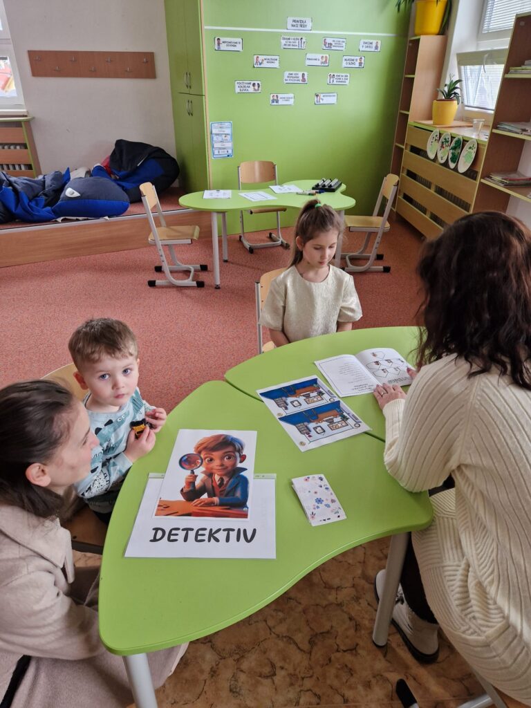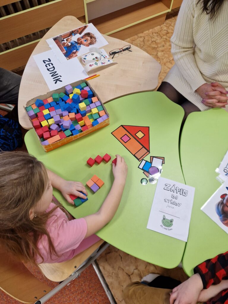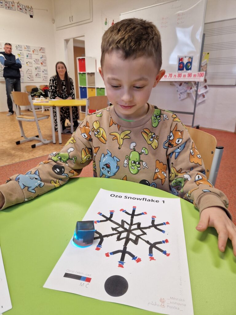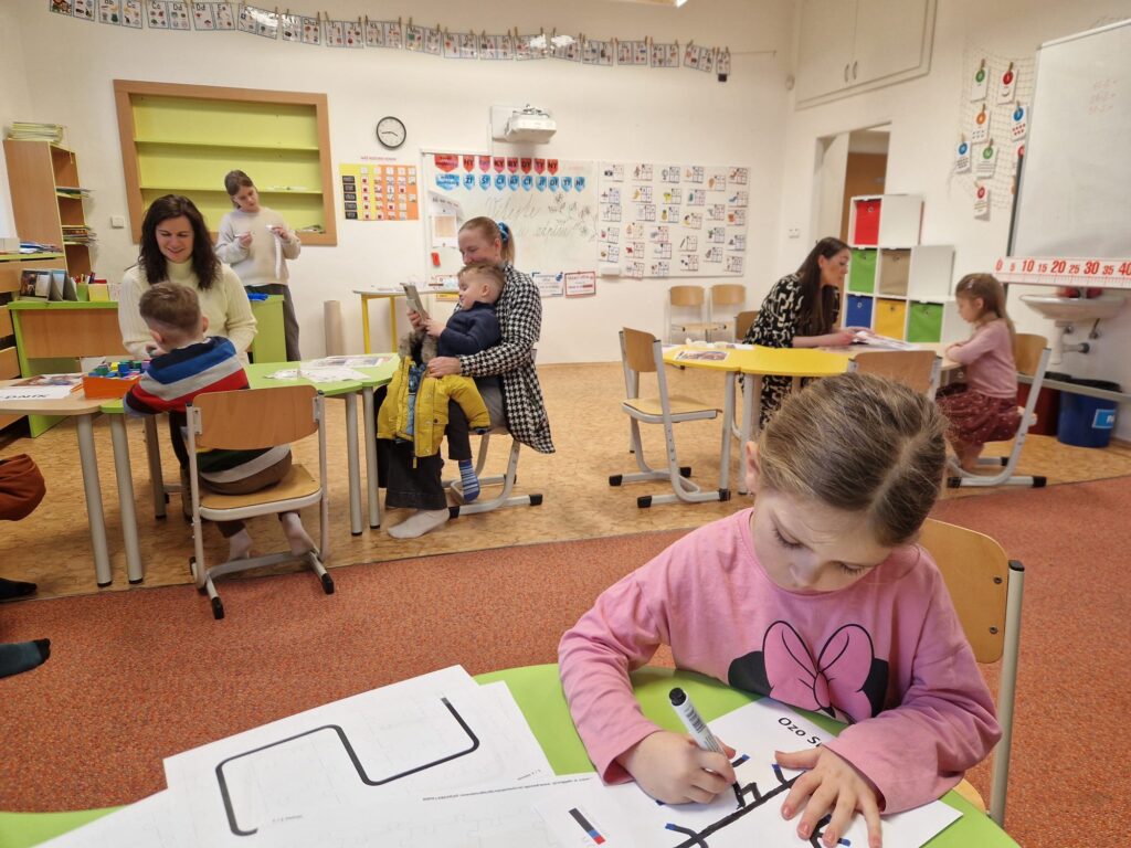 Motivační část zápisu se nesla v duchu tématu „Čím budu, až vyrostu?“. Pro děti byla připravena stanoviště s různými povoláními – kadeřnice, zahradník, detektiv, zedník a pošťák. Každé stanoviště rozvíjelo jinou dovednost a nabízelo pestré aktivity. Děti si vyzkoušely stříhání a práci s papírem, kreslení, pozorné zkoumání i hledání rozdílů. Procvičily si také logické myšlení při řazení obrázků podle posloupnosti a nechyběla ani ukázka moderních technologií – budoucí školáci si mohli vyzkoušet programování ozobotů. Poděkování patří také našim holkám z 5. ročníku, které ochotně provázely uchazeče po škole, odpovídaly rodičům na dotazy a byly celou dobu po ruce.