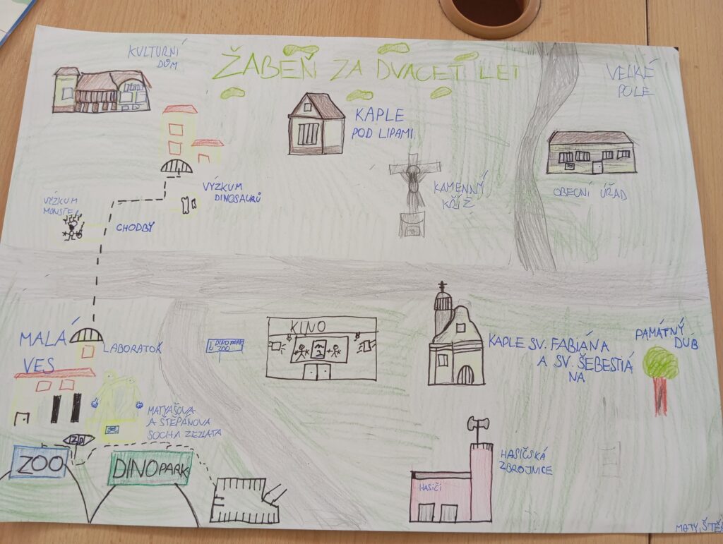 Po té žáci návštěvě představili svá mapová zpracování otázky: Jak by podle nich vypadala Žabeň za 20 let? Některá přání se určitě splní, žáci se mají na co těšit.