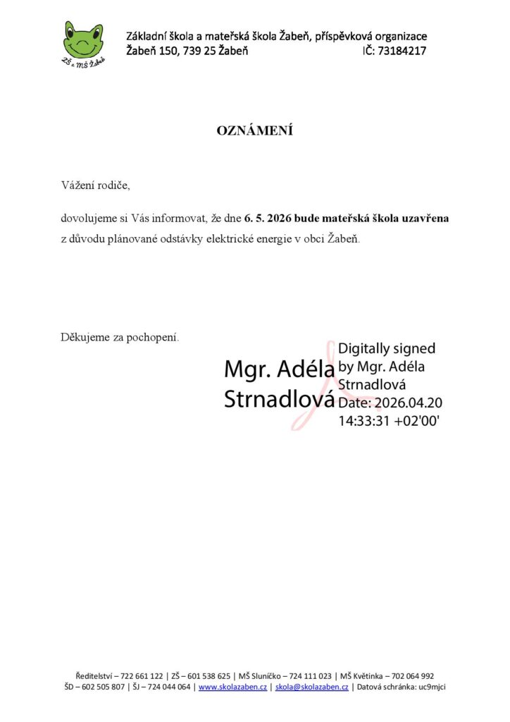 Uzavření MŠ 6. 5. 2026