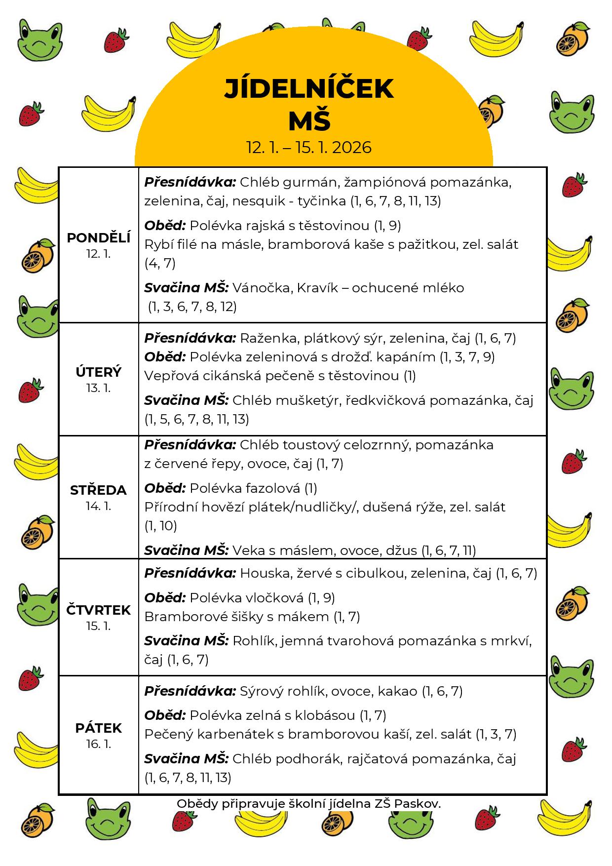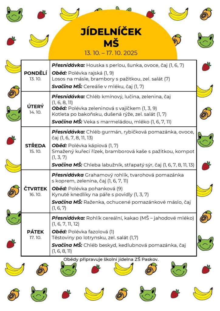 Stravné za oběd může být změněno dle aktuální finanční kalkulace i během školního roku na základě rozhodnutí a pokynů vedoucí ŠJ ZŠ Paskov.